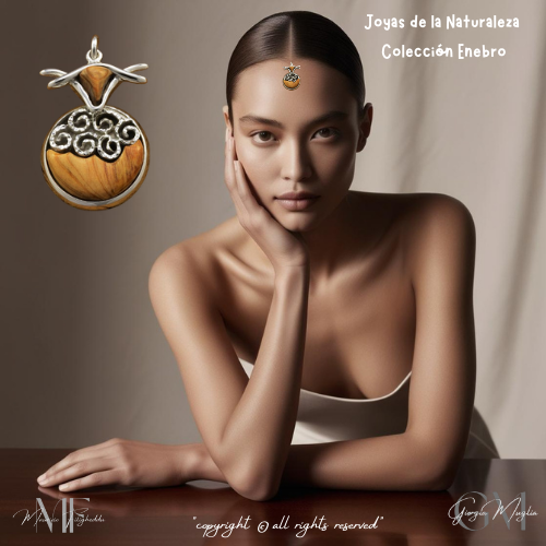 Joyas de la Naturaleza, forjada en plata incorporan incrustado en su interior un fragmento de enebro, la preciada madera de tradición milenaria, naturalmente perfumada y de gran carga simbólica.