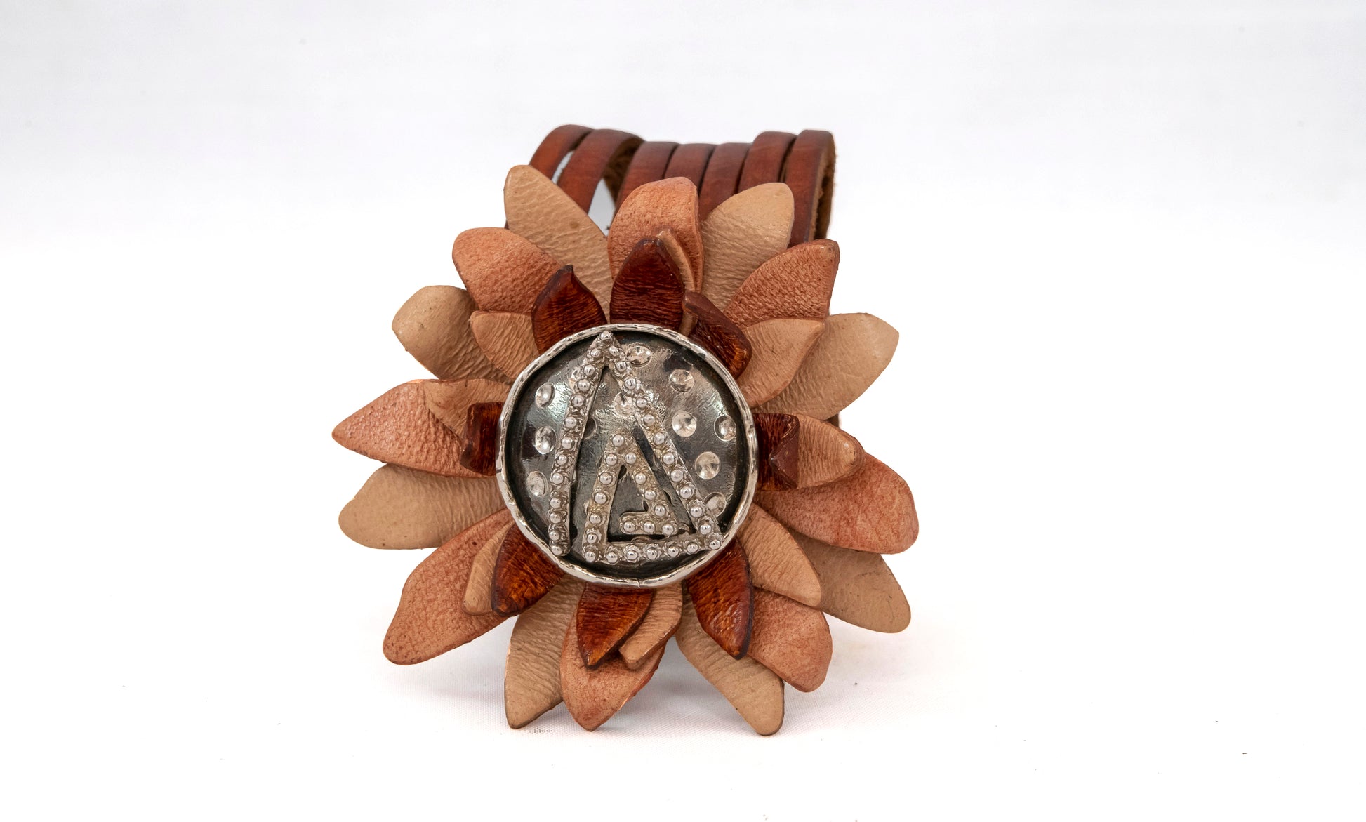 Pulsera Flor y Piel Marrón - Triángulo plata de ley 925